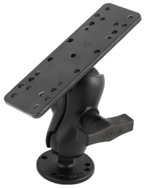 Тримач RAM-111U-B з кріпленням RAM для GPS-ехолотів і картплоттерів Garmin, Humminbird, Lowrance та Raymarine, встановлений на плоскій поверхні за допомогою обертової головки 1,5 дюйма.
