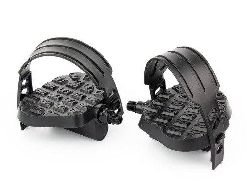- Педалі пластикові BP-4188 на шарикопідшипниках, чорні, з носками, призначені для велотренажерів.