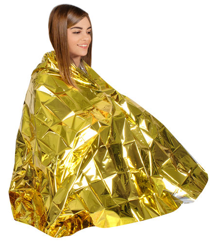 Рятувальну ковдру слід розстелити на всю ширину й загорнути навколо пораненого. Заклейте, скотчем або зв’яжіть кінці разом, але залиште обличчя пораненого відкритим. Рятувальна термоковдра з двосторонньої плівки, яка використовується в порятунку, туризмі, скелелазінні та надзвичайних ситуаціях або екстремальних умовах.