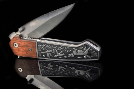 На лезі є шпилька, яка дозволяє відкривати ніж однією рукою.