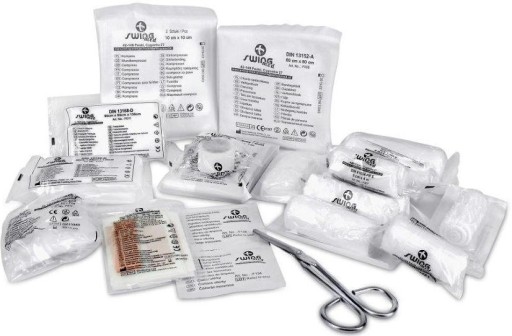 У набір входить необхідний набір перев'язувального матеріалу та інструменти для надання першої допомоги.