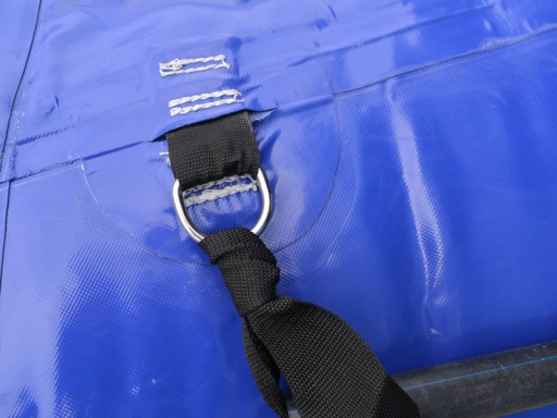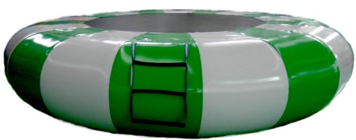 Водний батут виготовлений з матеріалу ПВХ товщиною 0,9 мм і підвищеною стійкістю до шкідливого впливу сонячних променів. Має дуже міцну конструкцію та якісне зварювання, що забезпечує ідеальну герметичність виробу. Надувний елемент батута з'єднується з батутом за допомогою спеціальної гумової мотузки, що складається з джгутів. Батут оснащений драбинкою або ручкою для підйому.
