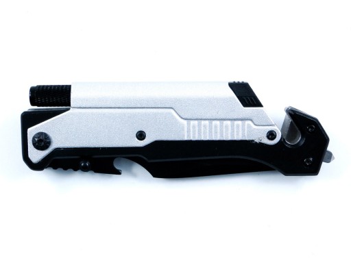 Лезо наполовину гладке, наполовину зубчасте, покрите чорним гальванічним покриттям. Додатково оснащений відкривачкою для пляшок.