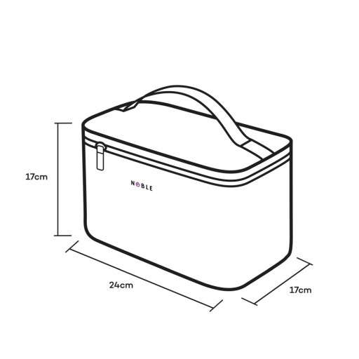 - Великий металевий логотип NOBLE® на передній частині косметички підтверджує оригінальність продукту.
