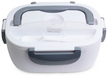 Praktyczny, elektryczny termos obiadowy z możliwością podłączenia do gniazda zapalniczki samochodowej.