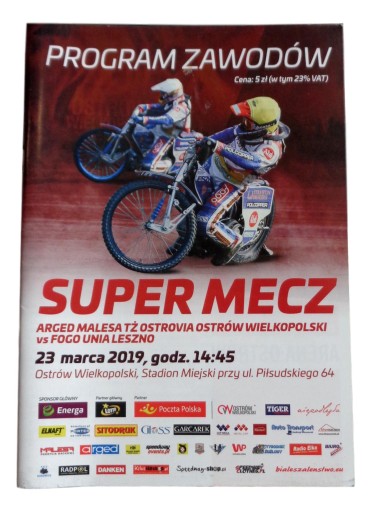 Програма змагань SUPER MATCH ARGED MALESA TŻ OSTROVIA OSTRÓW WILKOPOLSKI vs FOGO UNIA LESZNO
