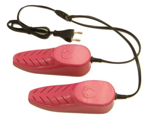 Електросушарка для взуття потужністю 12 Вт, живлення від розетки. Сушарка дуже зручна і проста у використанні. Ви просто розміщуєте нагрівальні вставки у формі контурних черевиків всередині взуття. Після включення в розетку загоряється діод і сушильні вставки починають нагріватися і сушити взуття зсередини. Час, необхідний для висихання взуття, становить приблизно 1-3 години, залежно від того, наскільки взуття вологе. Температура сушіння 65-80 градусів. У верхній частині сушарки є спеціальні довгасті отвори, які забезпечують правильну циркуляцію теплого повітря та забезпечують рівномірне та безпечне сушіння взуття зсередини. Наша сушильна машина енергозберігаюча, має потужність 12 Вт, тому споживає лише 0,012 кВт/год.