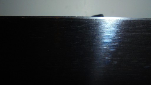 Пошкоджений ламінат, місцями розходиться верхній шар.