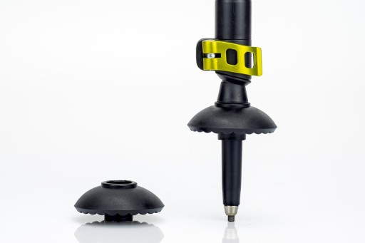 Стандартно палиці оснащені двома гумовими наконечниками на наконечниках, двома меншими літніми пластинами і двома великими зимовими.