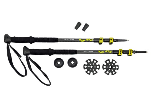 Основний базовий матеріал моделі Rapid Carbo - вуглецеве волокно.Палиці характеризуються дуже малою вагою, яка становить всього 230 грам на одну палицю, максимальна висота палки - 135 см, мінімальна транспортна висота - 63 див. удар палицею об тверду поверхню.