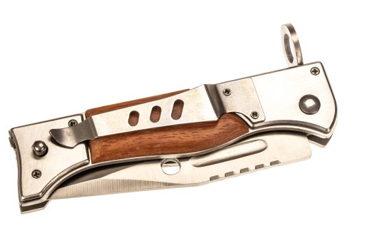 Ніж виготовлений з високоякісної нержавіючої сталі. Має захист від випадкового закриття.