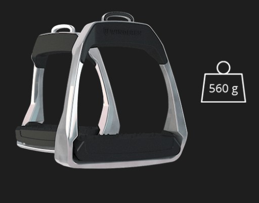Для отримання відповідної ваги стремена металевий каркас виготовляється з якісного, міцного алюмінію, а ніжка і верхній кожух амортизатора виготовлені з міцного композиту. Таким чином ми досягли ваги одного стремена в 560 г. Це вага, яку більшість вершників, які тестували стремена, вважали відповідною. Вони не надто легкі і не надто важкі. Завдяки правильному балансу вони практично непомітні під час руху.