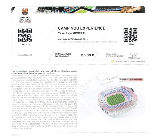Вхідна картка FC BARCELONA на CAMP NOU, оригінал