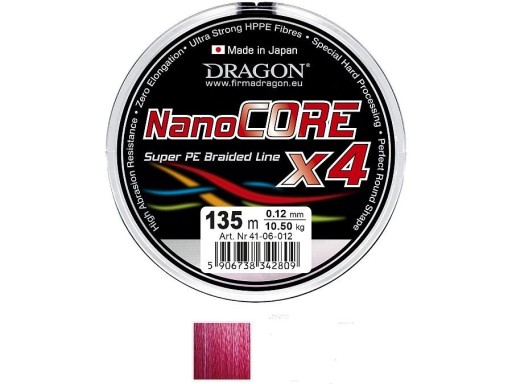 Найважливішими технічними параметрами Dragon NanoCORE X4 braid є: