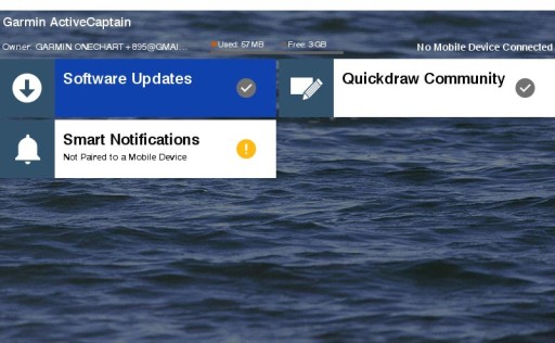 Echomap Ultra має вбудований Wi-Fi, який дозволяє підключати його до безкоштовної універсальної програми ActiveCaptain. Після тренування ви можете переглядати сповіщення з телефону прямо на екрані. Ви також можете використовувати спільноту Quickdraw Contours і ділитися своїми картами та завантажувати нові картографічні дані. ActiveCaptain також дозволяє завантажувати оновлення для ехолота через Wi-Fi.
