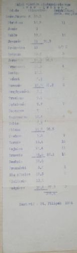 : Односторінковий машинописний документ, що представляє «Трейл міжміської гонки Львів – Краків» у велоспорті. Наведено назви понад 20 міст на маршруті перегонів, довжину окремих ділянок і приблизний час прибуття. Унизу напис «Склав: St. Filipek 1924».