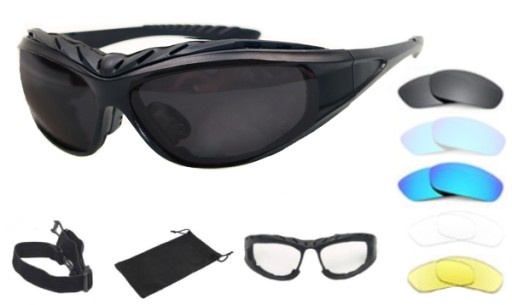 - В окулярах йдуть змінні лінзи - затемнені (сині REVO), злегка затемнені, жовті і безбарвні - злегка димчасті (плюс затемнені лінзи в окулярах).
