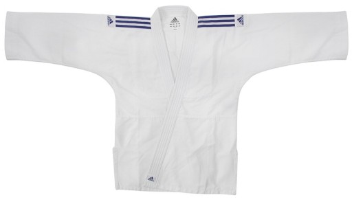 Кімоно буває тільки білого кольору. Гладкі нашивки з синіми смугами і логотипом adidas на плечах.