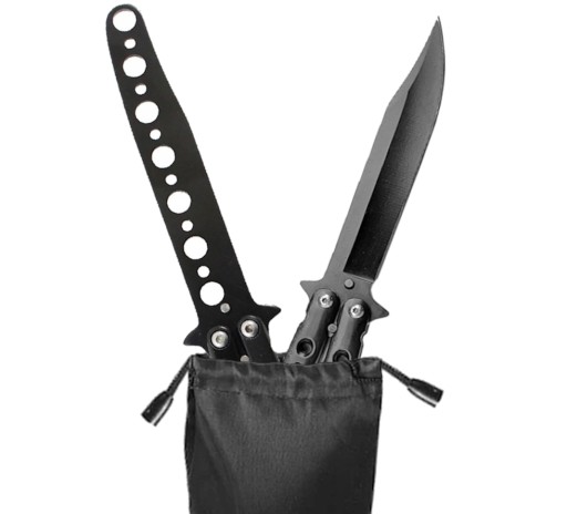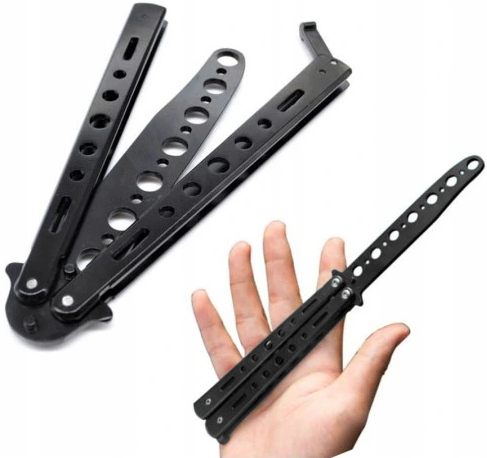 Тренувальний ніж метелик. Завдяки йому ви можете вдосконалювати свої навички батерфляя, відпрацьовуючи трюки з абсолютно безпечним інструментом, з тупим лезом. Має вбудований замок проти відкривання. Легко збирається.