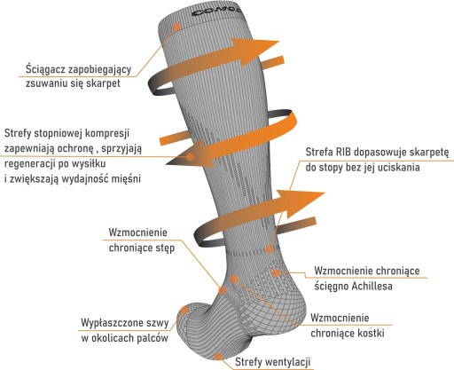 - Шкарпетки покращують кровообіг у м'язах, що сприяє швидкому відновленню після тренування та підвищенню працездатності під час занять.