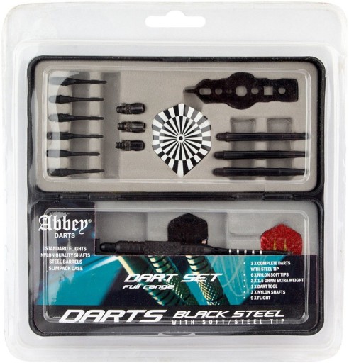 Набір дротиків Abbey є обов'язковим аксесуаром для всіх ентузіастів дартсу з будь-яким рівнем кваліфікації. Сталевий ствол у поєднанні з алюмінієвим ковпачком і сталевим наконечником зберігають баланс дротика, коли він летить до цілі, щоб забезпечити 100% точність досягнення цілі. У комплект входять сталеві наконечники для звичайних мішеней і м'які наконечники для електронних мішеней. Набір ідеально підходить як для тренувань, так і для гри з друзями вдома.