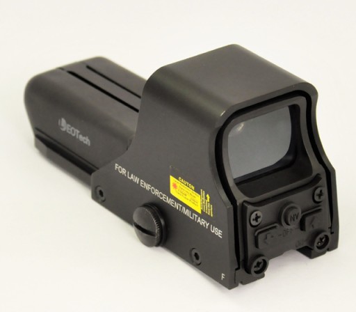 Професійний відкритий приціл з голографічним прицілом. Вірна копія коліматора EoTech 552. Має двадцятиступеневе регулювання підсвічування червоного та зеленого кольорів. Приціл призначений для страйкбольних копій, пейнтболу, пневматичної зброї, колекційних реплік.