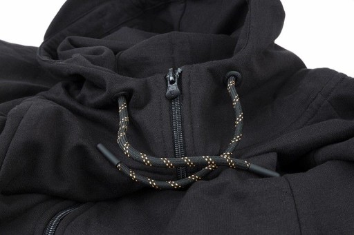 - шнурки на капюшоні з чорними та оранжевими плямами