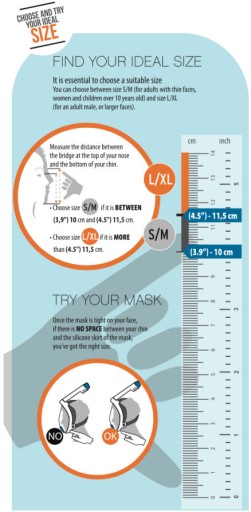 Доступний розмір обличчя та розміри від підборіддя до перенісся:
