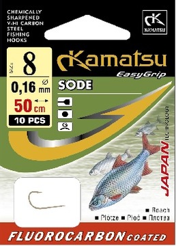 Przypony FC 50 Sode płoć należą do serii przyponów wiązanych na żyłce pokrytej fluorocarbonem! Linka ta charakteryzuje się zwiększoną odpornością na przetarcie oraz zmniejszoną widocznością w wodzie, ułatwiając łowienie ostrożnie żerujących, dużych ryb.