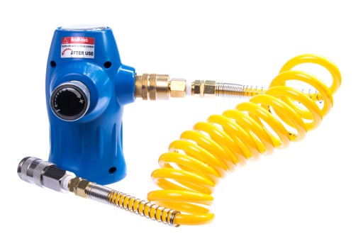 Набір додатково оснащений спіральним кабелем для підключення пневматичних інструментів. Виготовлений з м'якого поліуретану, стійкого до стирання та згинання. Кабель оснащений універсальним швидким роз'ємом, який підтримує три типи вилок: