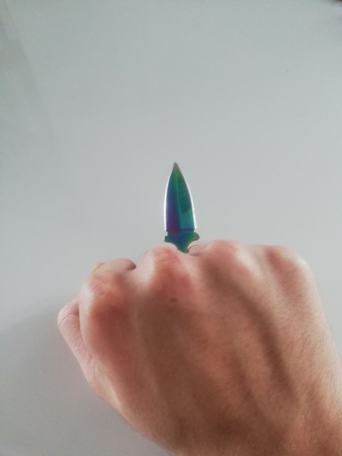 Дуже легкий і міцний ножовий кинджал, призначений для самозахисту. Легко приховати. Виготовлений з цільного шматка нержавіючої сталі.