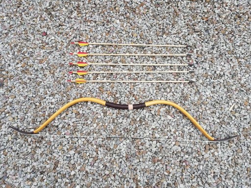 Лук виготовлений із пластику, рукоятка та місце торкання стріли лука обтягнуті шкірою.