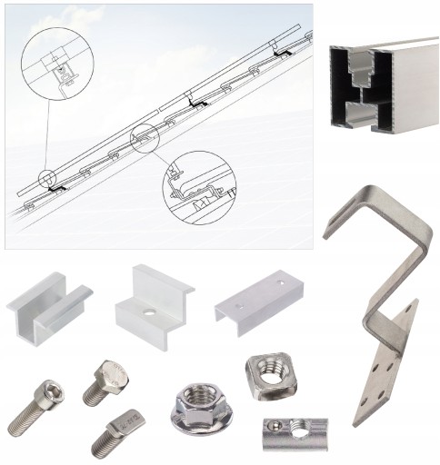 Монтажна конструкція, що дозволяє встановити фотоелектричні панелі на похилий дах, покритий металочерепицею або бітумною черепицею.