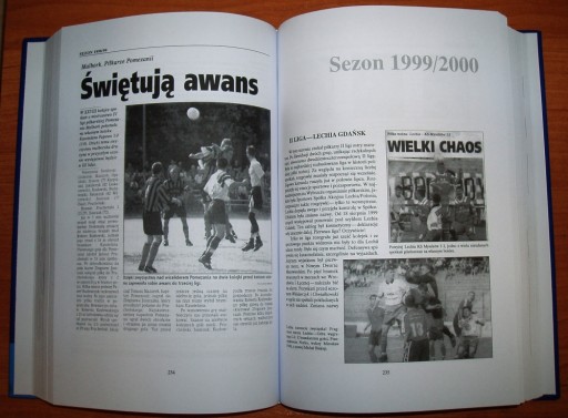 Сезон за сезоном описано центральні змагання за участю поморських команд і короткий нарис місцевих змагань. Ви можете детально стежити за долею найбільших і найсильніших клубів регіону: Lechia Gdańsk, Arka Gdynia, Bałtyku Gdynia, Polonia Gdańsk, Olimpia Elbląg, Pomezania Malbork і Gedania Gdańsk, а також за долею та результатами клубів з менших районів. центри в: Тчев, Вейгерово, Старогард, Косцежина та ін.