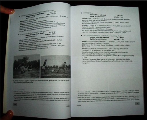 Як і в класичному виданні такого типу, у розділі про Польщу автори описують збірну, а потім ігри національного чемпіонату. Однак форма цього опису вже не є класичною, оскільки це не просто статистичний опис подій. Статистичні дані доповнюються розлогими текстами, в яких представлено передісторію та настрій епохи, окремо учасників та героїв подій. У випадку з національною збірною – також уся система підготовки та постійні дискусії на прес-форумах того часу. Ви зможете відчути справжню атмосферу навколо тих подій. Самі статистичні дані також відображаються у небачений раніше спосіб. Авторів цікавлять не лише події з «перших сторінок газет». Видання містить результати районних змагань до найнижчого рівня ліги, тобто класу С. Усе це проілюстровано дуже ретельно підібраними фотографіями. Треба визнати, що фотографії є ще однією сильною стороною цієї книги, адже в деяких фрагментах вона навіть набуває вигляду старого, архівного альбому. Деякі з цих фотографій були кольоровими, що є ще однією привабливою особливістю видання.