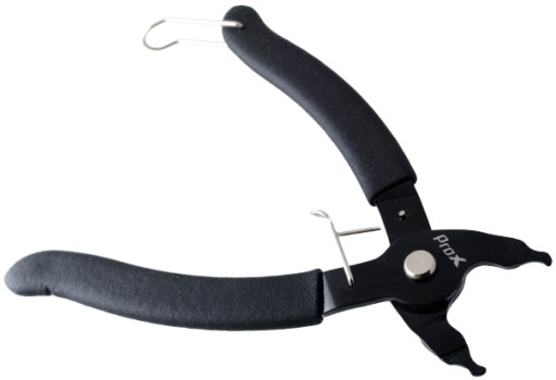 PROX MP02 - це інструмент, призначений для розстібання та кріплення велосипедного ланцюга, з'єднаного кліпсою. Розстебніть ланцюг, помістивши руки між ланками і стиснувши ланцюг, закріпіть його, виконавши зворотний рух. Крім того, плоскогубці допомагають тримати ланцюг натягнутим, щоб він не спадав з приводу.