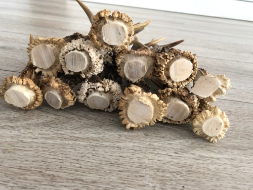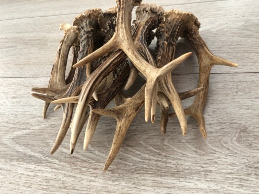 Продукт: Натуральні, справжні оленячі роги. Ми надсилаємо випадково вибрані з величезного пулу. Вони не будуть ідентичні прикладам на фото, але схожі за формою рогів, формою та кольором. Довжина пантів по прямій лінії 5-15 см, ширина 0,5-1,5 см.