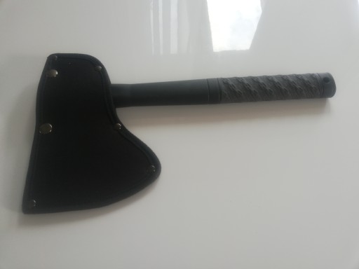 У комплекті з сокирою є нейлонова кобура, яку можна закріпити на поясі. На кінці ручки є отвір, через який ми можемо протягнути і мотузку, і паракорд.