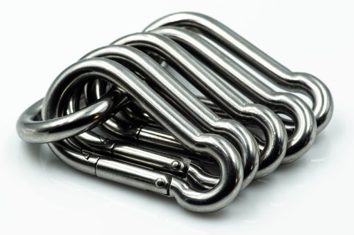 Напевно всі знають, як виглядає карабін. Це свого роду затискач, зазвичай металевий, із шарнірною пружинною частиною, так би мовити, затвором, який відкривається, щоб ви могли вставити щось, за що хочете зачепити. Найчастіше це мотузка, ланцюг або другий карабін. Або мільйон інших речей!
