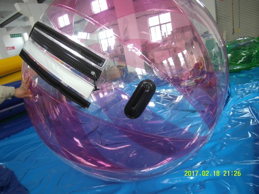 Куля для води, виготовлена з матеріалу TPU, товщиною 0,8 мм і діаметром 2 м. TPU - це матеріал, особливо рекомендований для куль, балонів з водою та для виробництва обладнання, яке піддається мінливим погодним умовам. Він набагато стійкіший, ніж ПВХ матеріал. М'ячі з матеріалу TPU легші, міцніші, більш стійкі до низьких температур, менш схильні до механічних пошкоджень. Вони не жовтіють під впливом сонячних променів.