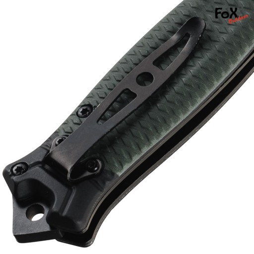 Важкий складний тактичний ніж - багатоцільовий. Продукт німецького бренду FOX Outdoor. Пристосований до роботи в складних умовах. Міцна конструкція, рекомендована для виживання, дозволяє бити палицею і виконувати точну роботу одночасно. Рукоять створена за зразком сучасного тактичного ножа Gerber Strongarm.