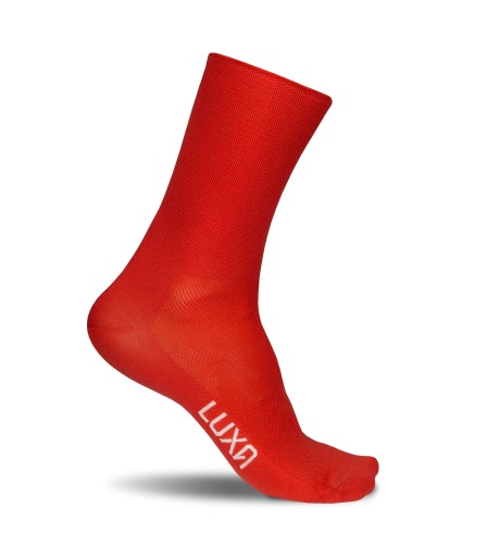 Прості червоні велоспорти класичного насиченого кольору. Відповідна суміш волокон у нижній частині призначена для запобігання неконтрольованого руху стопи у взутті. Шнурок у верхній частині утримує носок на нозі в рівномірному положенні. Шкарпетки виготовлені з високоякісних синтетичних волокон PROLEN®YARN, які ідеально відводять піт і тепло в жарку погоду. Поліпропіленова нитка має антибактеріальні властивості і не допускає утворення неприємних запахів.