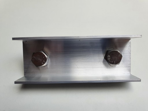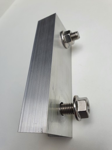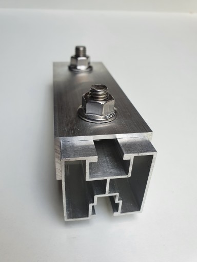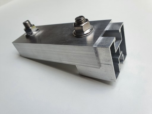 В комплект входить з'єднувач (алюміній) + гвинти з гайками (нержавіюча сталь) для прикручування до профілю.