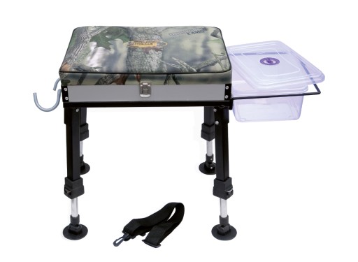 Дуже зручне та корисне рибальське сидіння з аксесуарами. До складу сидіння входять тримачі для вудок, каркас лотка з кришкою і транспортувальний ремінь для носіння на плечі. Всі чотири ніжки регулюються, що дозволяє дуже легко адаптуватися до умов риболовлі. Дуже м'яке і зручне сидіння і багато місця під сидінням для різних аксесуарів. Всі ніжки складаються під сидінням, що дуже полегшує транспортування.