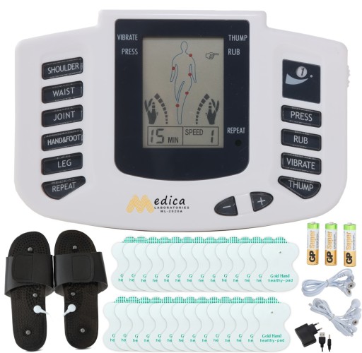 ЕЛЕКТРОСТИМУЛЯЦІЯ ML-2020A З АКСЕСУАРАМИ +28 ГІДРОГЕЛЕВИХ ЕЛЕКТРОДІВ