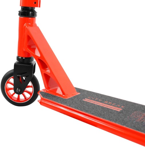 Поліуретанові колеса розміром 110х24 мм з алюмінієвим сердечником впораються з будь-яким покриттям, як при виконанні трюків, так і під час звичайної їзди по місту. Крім того, трюковий скутер INDIANA X1 оснащений гальмом з марганцевої сталі, що забезпечує швидку та надійну зупинку автомобіля.