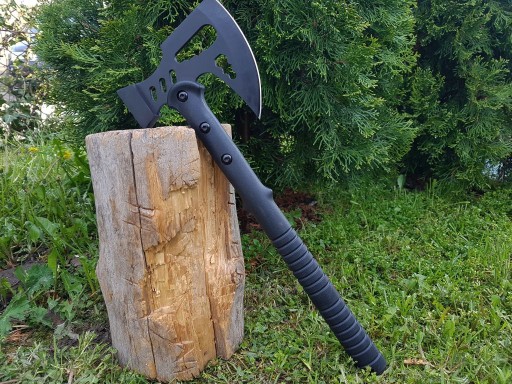 Сокира Томагавк, виготовлена з нержавіючої сталі та міцних полімерів. Дуже простий дизайн робить його міцним гаджетом, яким буде задоволений кожен військовий і любитель виживання. Рукоятка з полімеру забезпечує надійне захоплення.Тактичний топірець розроблений як комбінація Tomahawk і FastHawk. Багатофункціональний інструмент із чудовими ріжучими властивостями, який ідеально підходить для таких дій, як балансування, рубання, усунення перешкод тощо.