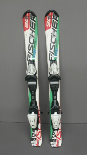 Дитячі лижі б/у (кат. № 1/20) FISCHER RACE XTR, довжина 90см; бічний виріз 92-69-78 ; радіус повороту 9м; з кріпленнями FISCHER FJ4 (діапазон 0,75 - 4,5), для чобіт довжиною 199 - 283 мм.