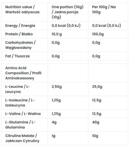 100% BCAA, L-глутамін і цитрулін малат в одному продукті.
