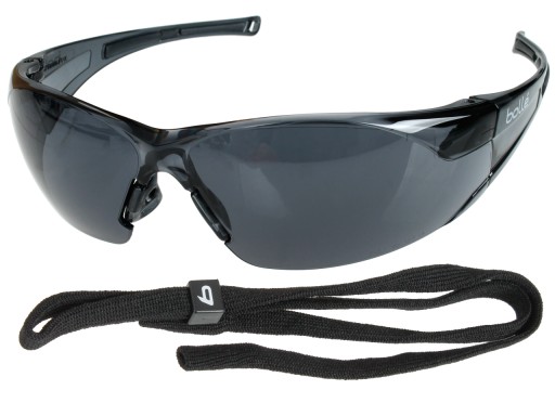Тоновані захисні окуляри BOLLE RUSH Smoke PC ASAF Cord з механічною міцністю скла для захисту очей від осколків, рикошетів та інших налітаючих предметів згідно. клас F (об'єкт масою 0,86 г, що рухається зі швидкістю 45 м/с) і Т (гарячі частинки).